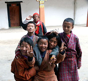 of the massive Punakha dzong. Here are some kids and a warrior goofing around before the