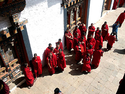 A view of the Punakha Dzong monks waiting around for the ceremonies to begin.