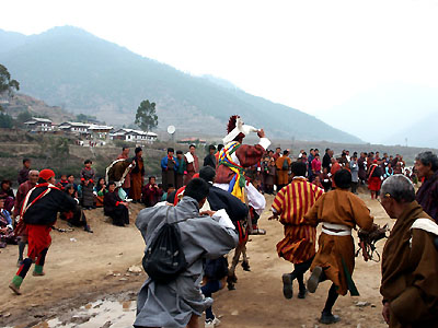 to a close with a warrior on horse mimicing the event of the tossing of a fake Chenrezig statue