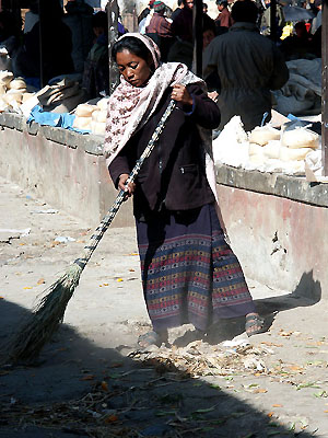 What you see hanging here is churpi, strings of white cubes of very, very hard yak milk cheese that you hold in