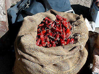 These peppers in the bright morning sun will likely end up in some very hot ema-datsi dishes.