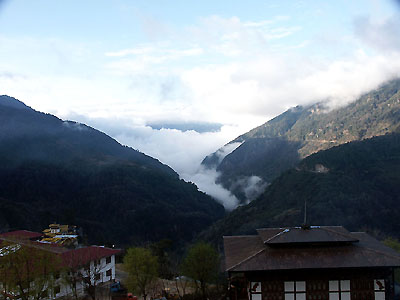 way to a sunny day. Trongsa is so high up that valley clouds can be seen from above.