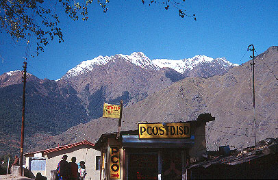 From Chopta, we drove down to the town of Josimath, nestled on the side of a steep mountain. The P.C.O.S.T.D.I.C.O. booth in the center is your standard Indian phone booth, each booth being a separate business.