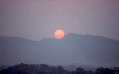 Continuing with my desert sunset photography, a 300mm zoom of the sun setting over the Rajasthani desert near Udaipur.