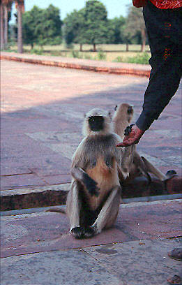 the Indians called "langurs". As seen here, they have black faces and white hair. They are