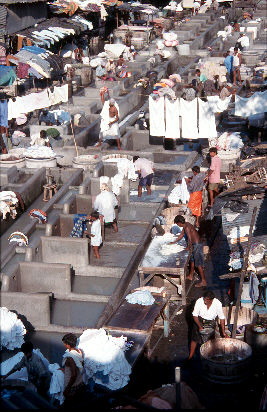 One of the most fascinating and unusual sights of Bombay are the dobi-ghats, the laundry capital