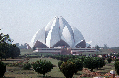 in the shape of a lotus flower. This is the Asian headquarters of the Bahai faith, and a circular temple