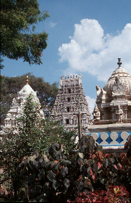 Here is an example of the variety of temple architecture in Southern India. The center temple is the most common