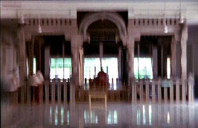 before sitting down in the hall. There are daily chanting, pujas and meditation sessions in the hall as well as in