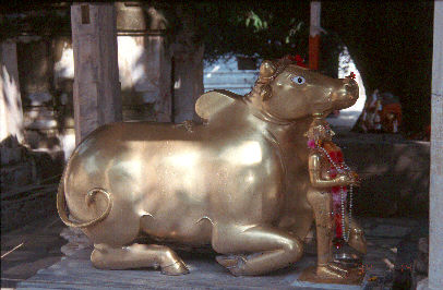 Outside the Acheleshwar Mahadeva temple stands the ubiquitous Nandi Bull, but this one is