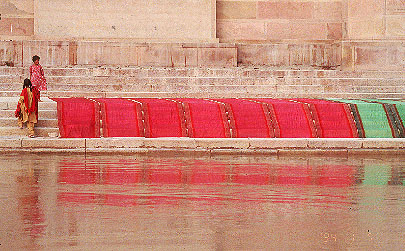 Here we see the locals drying out silks on the ghats - Varanasi is also famous for its silks,