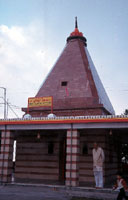I picked a small vendor, a young boy selling little potato-like pancakes and vegetables. So I stood at a wall eating this lunch, which was great, with many people passing by, some saying hello, some coming up and shaking my hand, asking me where I am from and trying their English on me, which apparently gives them a real kick that they can communicate effectively with me. Across the way, a sadhu that I saw at Nilkanth, with matted hair and saffron robes, sat down at a vendor booth across the lane with another older sadhu. Recognizing that we saw each other at Nilkanth, we smiled at each other. Kunjapuri Mountaintop Durga Temple