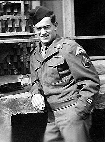 These webpages are dedicated to my dad, Jerry Servedio, who served in the European theatre of WWII, primarily in west-central Germany, from 1944-45. When he died in 2002, one of the legacies he left was a photo album of his time in Europe during the war. This album of 500+ photos is an excellent window into the past, as my dad took meticulous notes on every photo, describing who, what, where and when on the back of each. I assume he used an old Brownie automatic, as the prints range from 2 1/2 x 2 to 1 inch square minis.